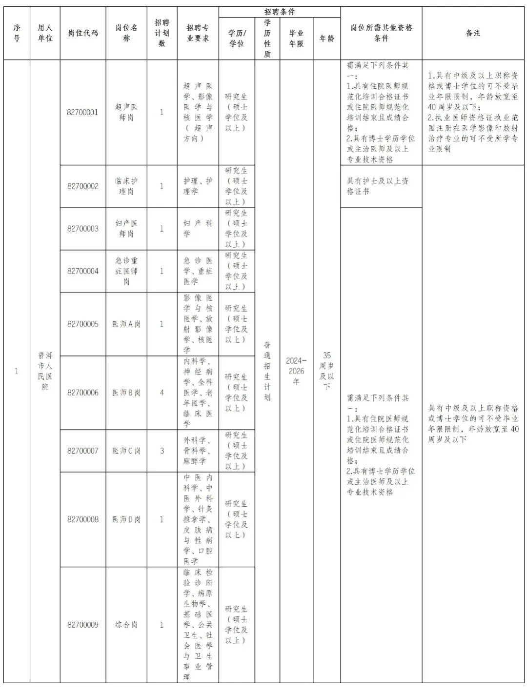 根据医院发展规划及事业单位公开招聘相关政策规定,普洱市人民医院决定采取面向社会公开报名、综合评定、择优聘用的方式招聘急需紧缺人才14名,现将招聘有关事项公告如下。