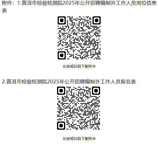附件:1.普洱市检验检测院2025年公开招聘编制外工作人员岗位信息表